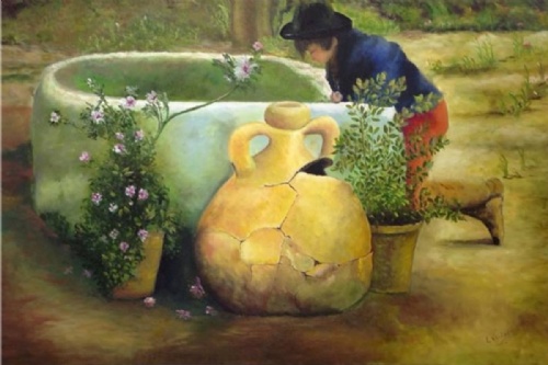 Menino junto ao poço s/d de Belmiro Barbosa.